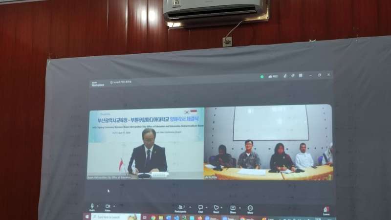 Penandatanganan ini dilaksanakan secara daring melalui Zoom pada Jumat (17/4/2026). Dari pihak UM Buton, penandatanganan dilakukan langsung oleh Rektor di ruang rapat Gedung B UM Buton. Sementara itu, dari pihak Busan dilakukan oleh Gubernur Pendidikan Busan, Kim Seok Joon, yang terhubung secara virtual.
