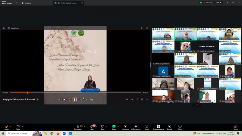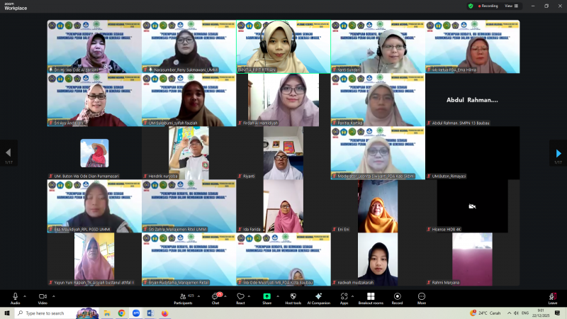 Rektor Universitas Muhammadiyah Buton (UM Buton), Dr. Hj. Wa Ode Al Zarliani, S.P., M.M., tampil sebagai salah satu pembicara dalam Webinar Nasional Peringatan Hari Ibu 2025 yang diselenggarakan oleh Pimpinan Daerah ‘Aisyiyah (PDA) Kabupaten Sukabumi, Senin (22/12/2025), secara daring melalui Zoom Meeting.